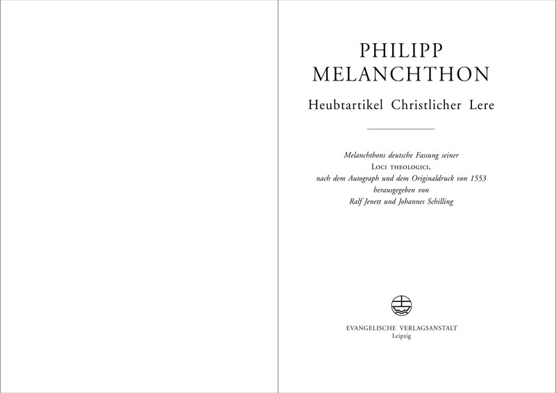 Melanchthon: Heubtartikel christlicher Lere Melanchthons deutsche Fassung seiner Loci theologici, nach dem Autograph und dem Originaldruck von 1553 / Herausgegeben von Ralf Jenett und Johannes Schilling — Gesamtgestaltung / Bildbearbeitung / Erstellung von Dateivorlagen / teilw. Satz — |