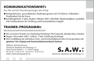 festgelegt, angewandt im Tonwert von 30%. Auftraggeber: Sächsische Akademie der Werbung e.V. |